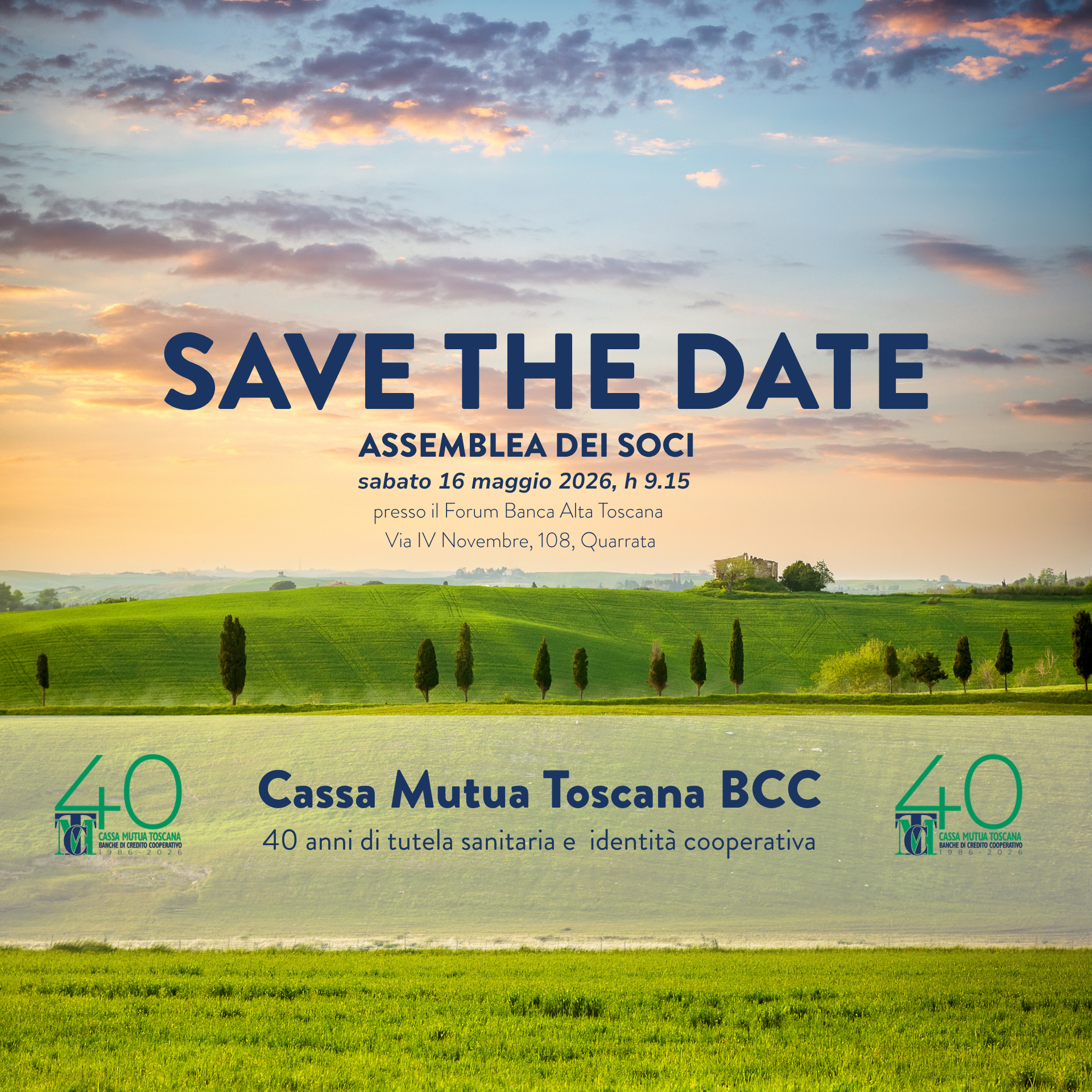 7 Aprile 2026 Notizie SAVE THE DATE Assemblea dei Soci Sabato 16 maggio 2026, h.9.15 presso il Forum Banca Alta Toscana Via IV Novembre, 108, Quarrata (PT) Gestore 0likes